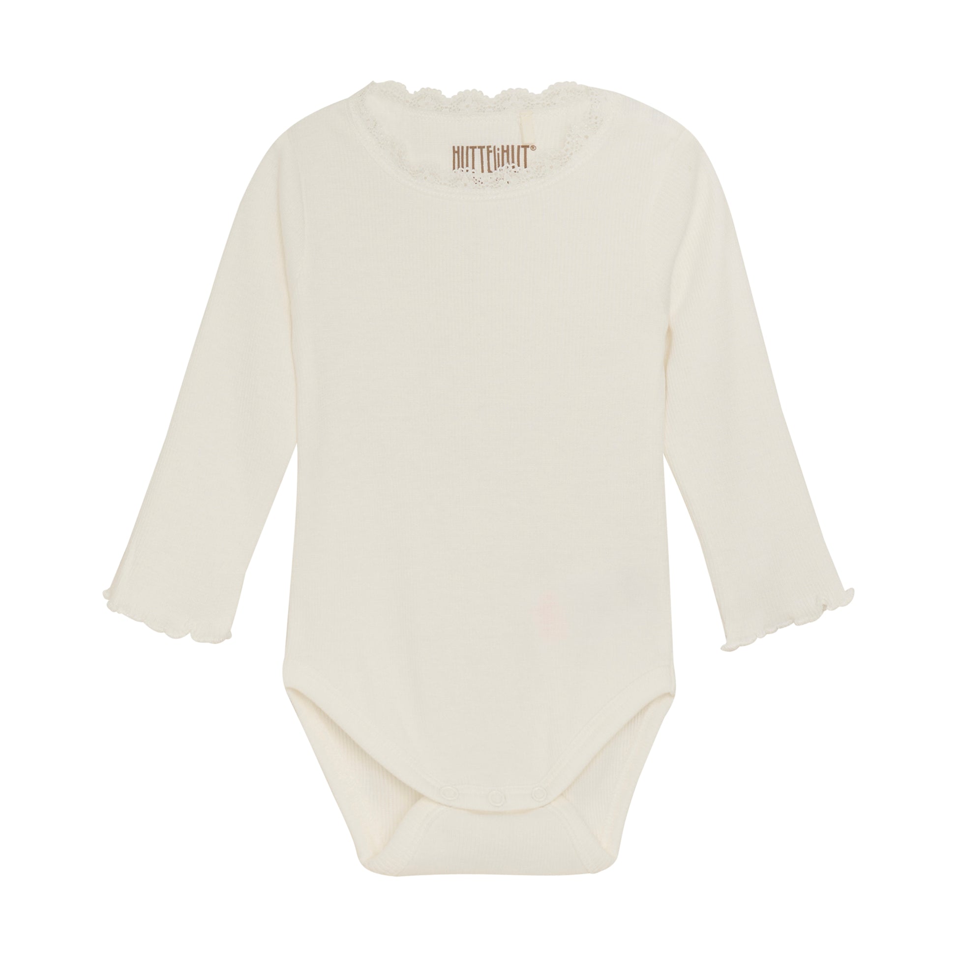 Velg HUTTEliHUTs ribbestrikkede bomullsbody for et allsidig og praktisk plagg som barnet vil elske å ha på seg.