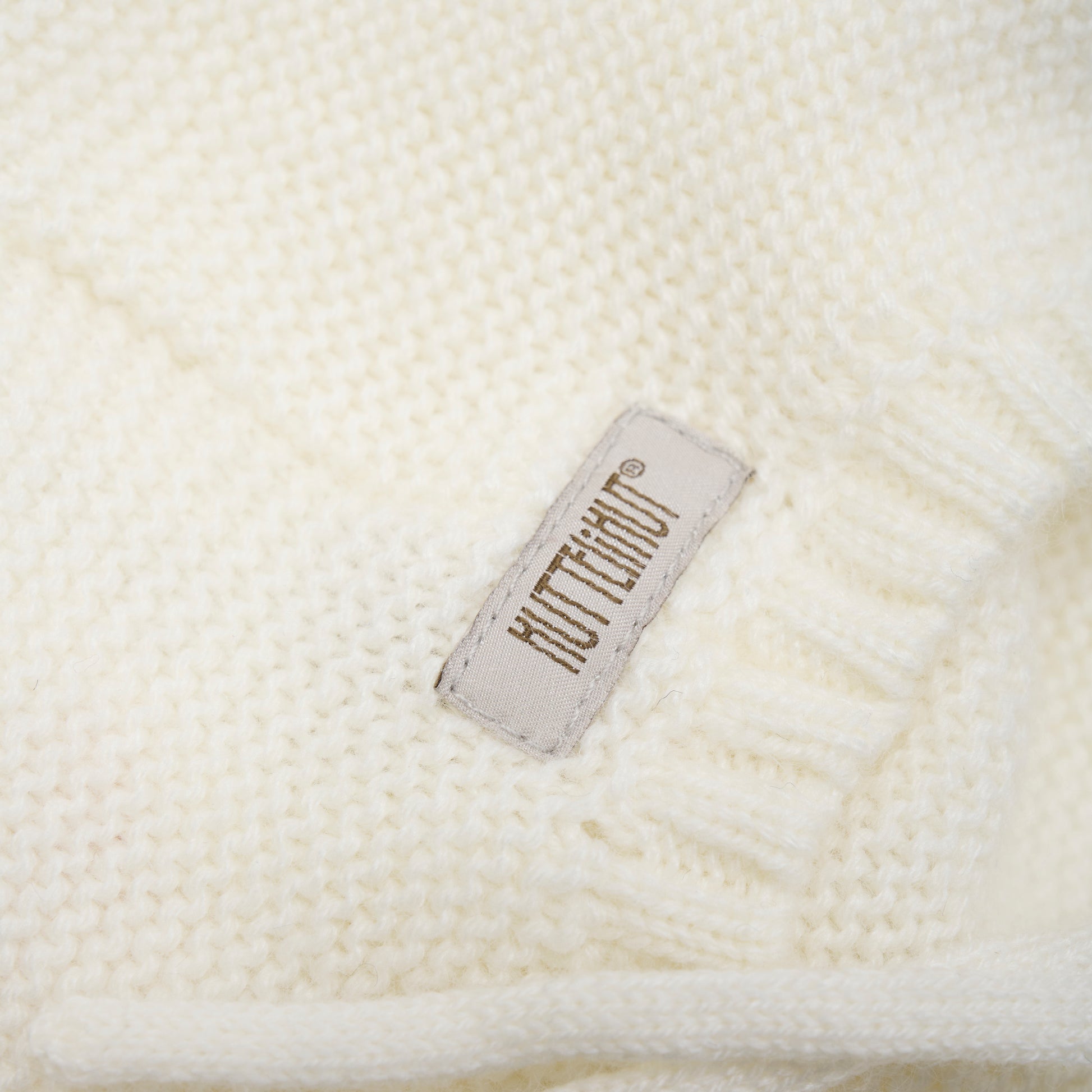 Velg HUTTEliHUTs ullstrikkede lue med knyting for et funksjonelt og stilfullt tilbehør som holder barnet ditt varmt gjennom vinterens kalde dager.