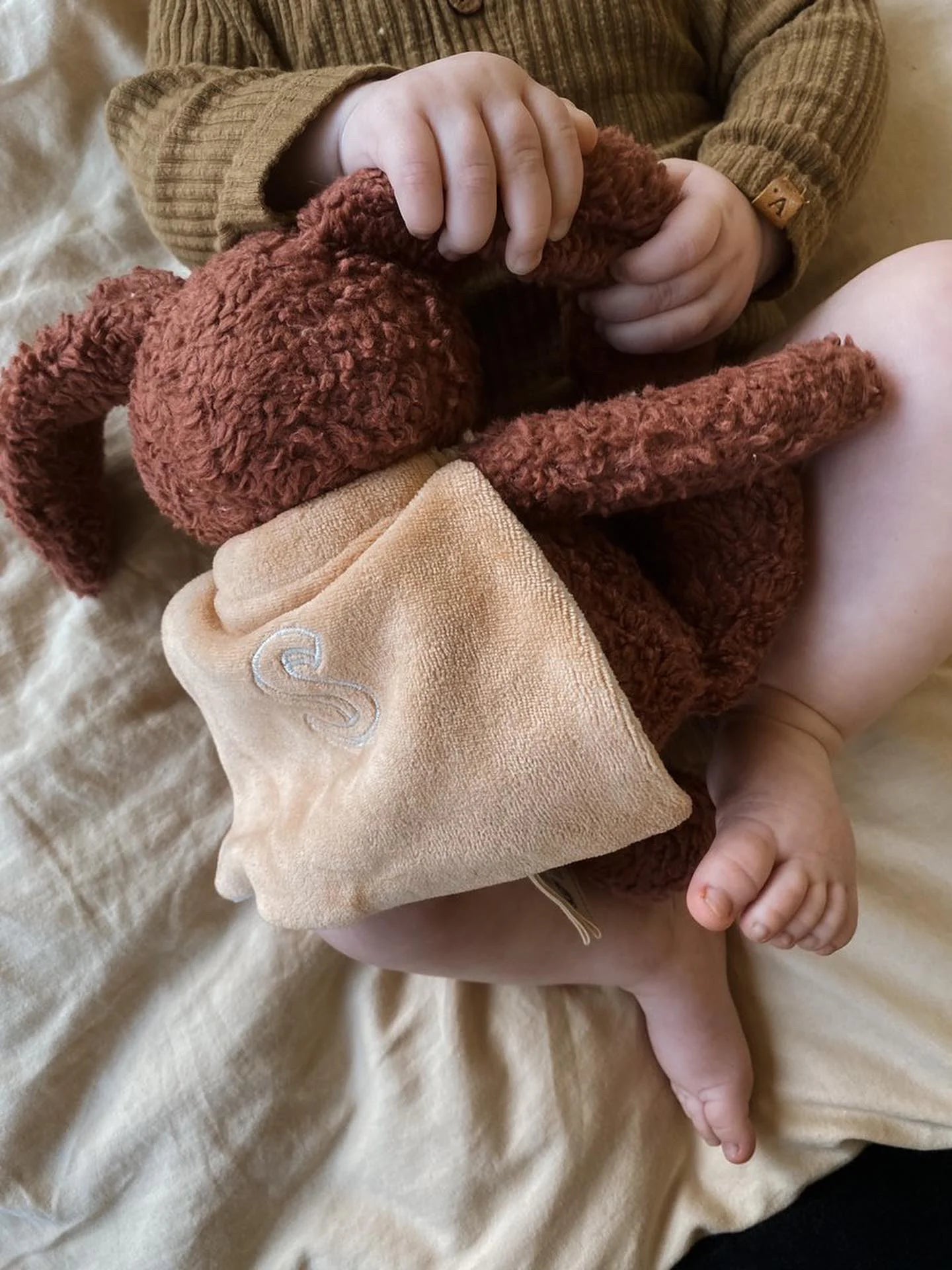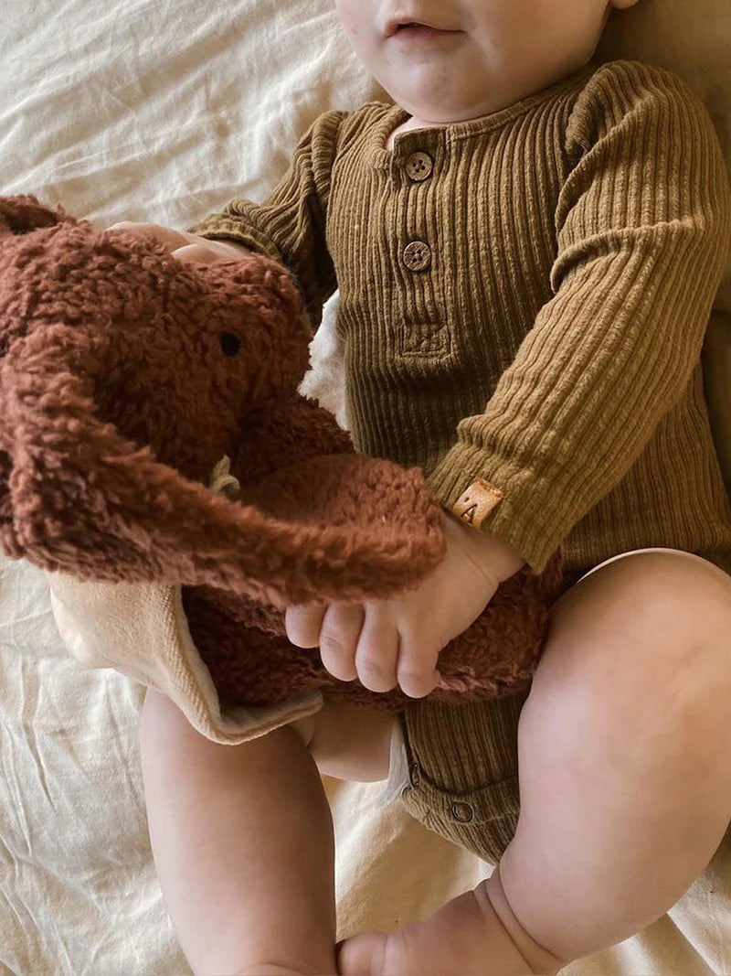 Denne bamsen er laget av GOTS-sertifisert bomull og inneholder ingen plast, slik som polyesterbamser. Den er ikke bare myk, men også bærekraftig og trygg for både barnet ditt og miljøet.
