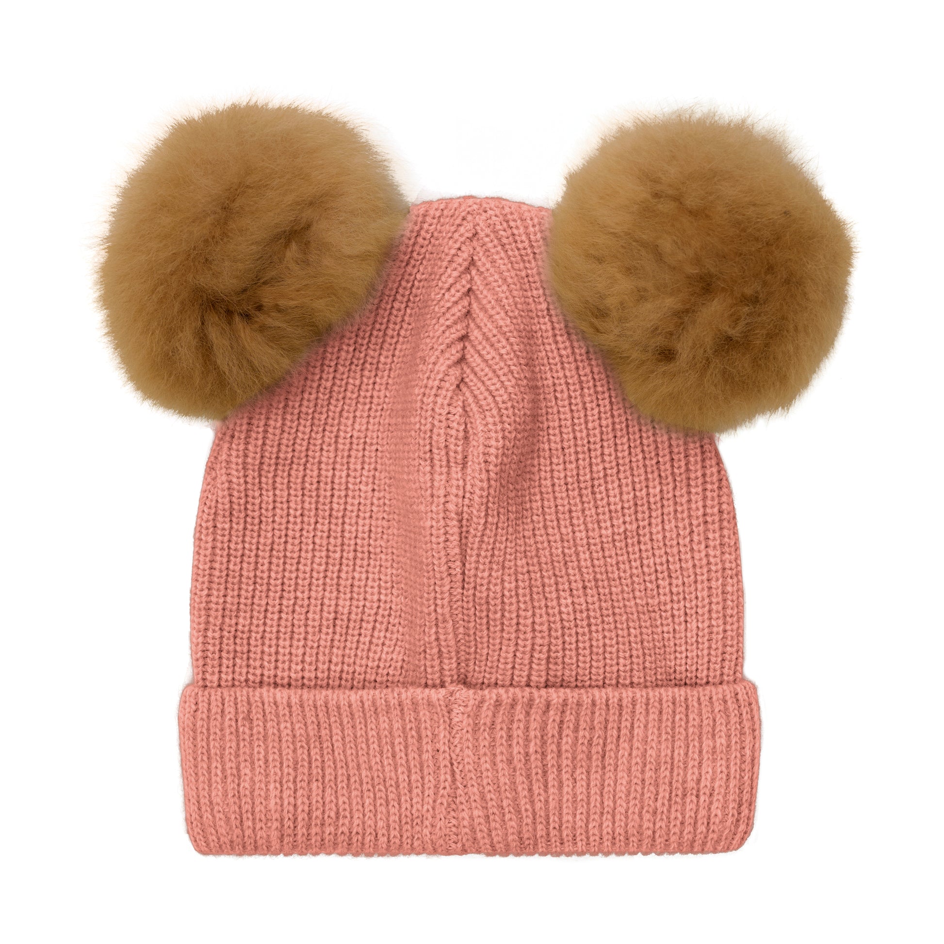 Velg HUTTEliHUTs strikkede lue med to pelsdusker for en stilfull og praktisk lue som holder barnet ditt varmt og koselig gjennom vinteren.