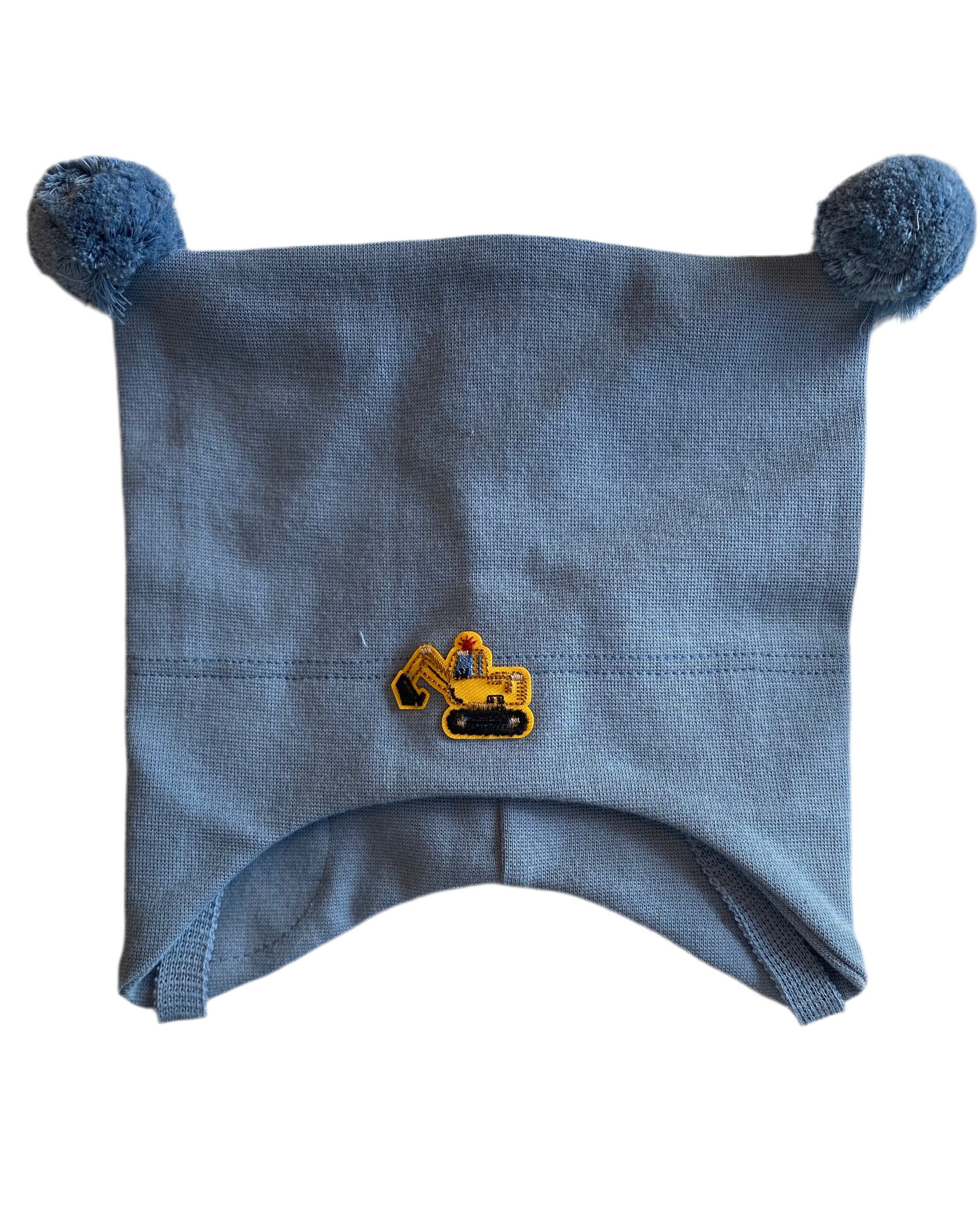 Kivat bomullslue har supergod passform og vindstopper på ørene. Luen har søte dusker, knyting og gravemaskin foran ved pannen. Luen består av en myk blanding av merinoull og organisk bomull. Kivat luene har en meget god kvalitet og holder seg fin vask etter vask. Kivat luene blir fort en favoritt for både barn og foreldre.