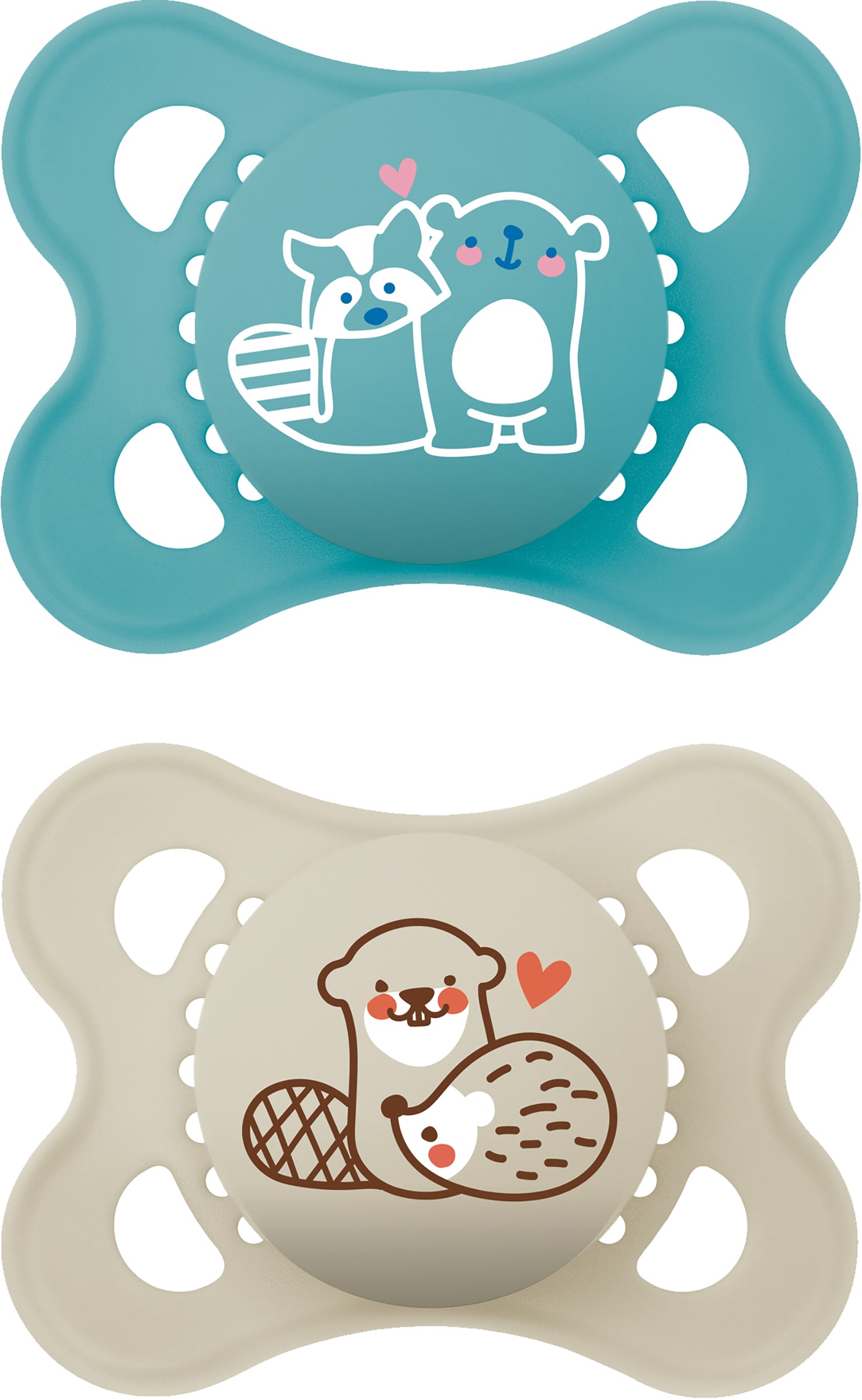 MAM Original leveres i en praktisk oppbevarings- og steriliseringsboks som gjør det enkelt å sterilisere smokkene i mikrobølgeovnen. MAM ønsker det beste for babyen din og planeten vår. Derfor er skjoldet, knoppen og steriliseringsboksen laget av biosirkulære materialer**.