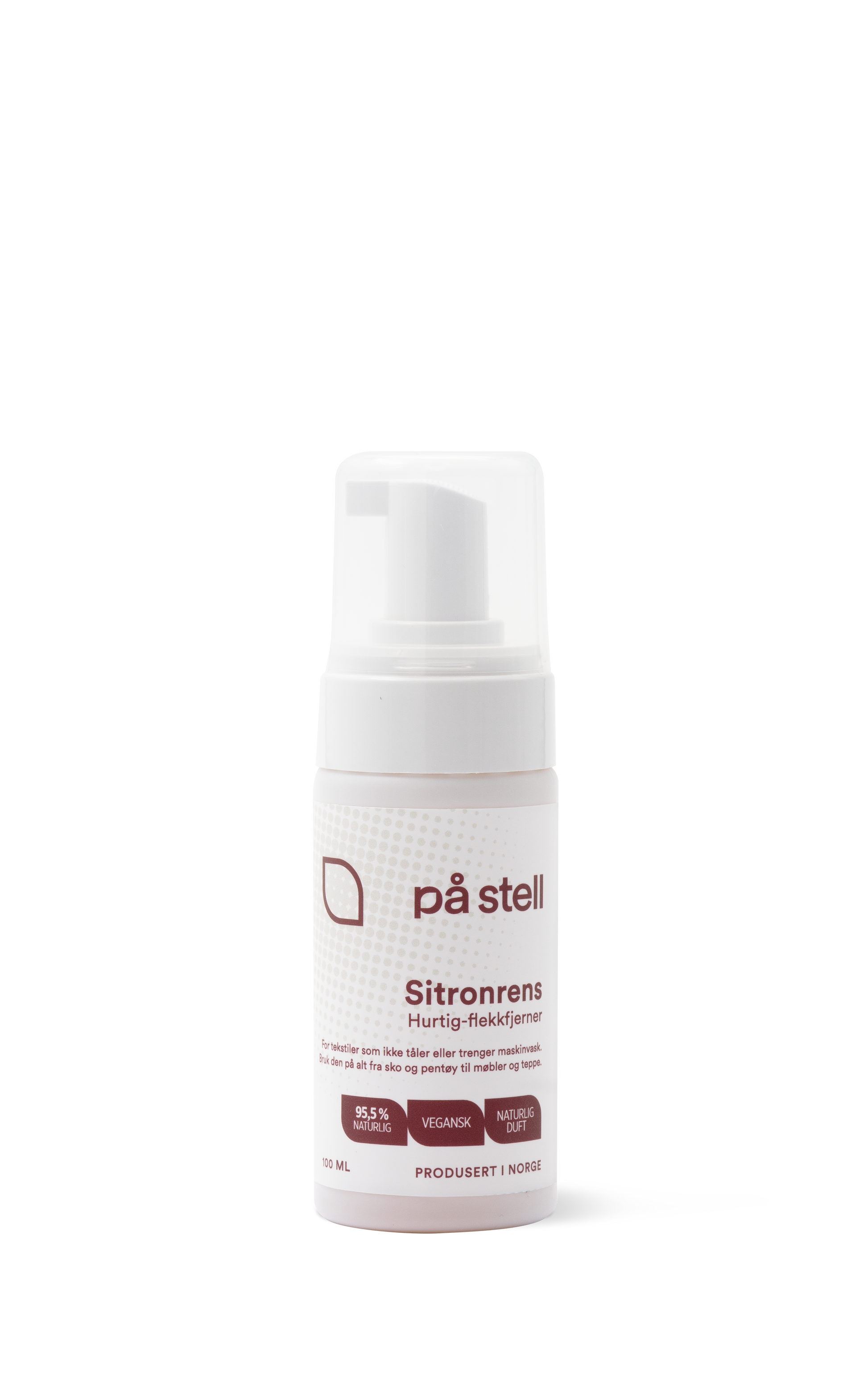 Sitronrens er en effektiv og hurtigvirkende skumspray som raskt fjerner flekker fra tekstiler som må renses eller som ikke tåler eller trenger maskinvask. Bruk den på vanskelige flekker som rødvinssøl på sofa eller tepper, malingflekker, pennemerker, fett, olje og annet. Fjern møkk, skitt og flekker på sneakers og skinnsko raskt og enkelt. Bruk den på ull, pentøy og tekstiler som krever skånsom behandling uten mye gnikking. Bare spray på, gni, tørk av med det samme og se flekkene forsvinne!