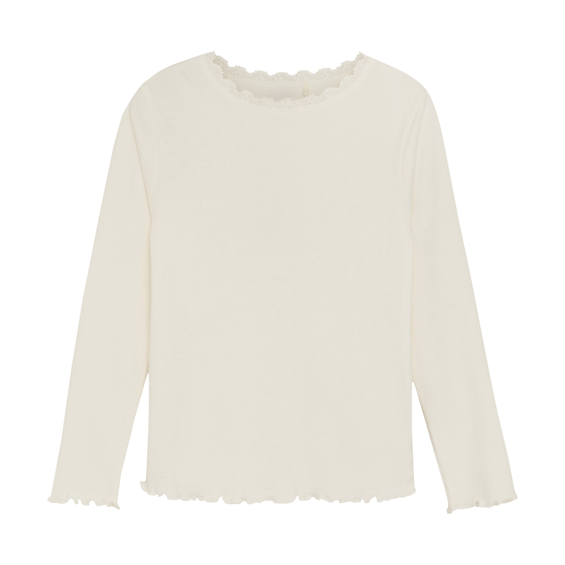 Den ribbestrikkede strukturen gir en fleksibel passform som følger barnets bevegelser, mens det tidløse designet gjør genseren enkel å kombinere med både bukser, skjørt eller leggings. Genseren er lett å ta av og på, og kan vaskes på 30 grader for enkel rengjøring.